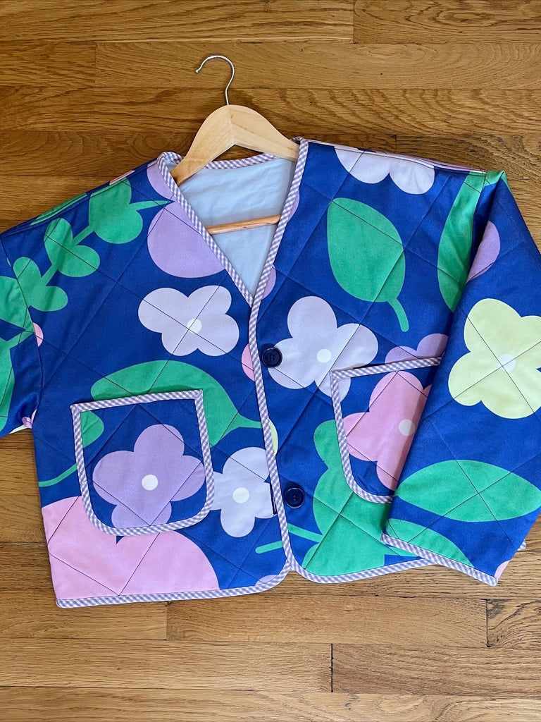 Designer textile autodidacte, je crée des collections en série limitées aux motifs fleuris et colorés